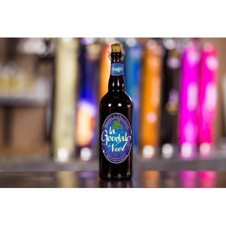 Goudale de Noël : bière de saison ambrée, saveurs maltées, épices et fruits secs, corps généreux, finale chaleureuse et festive.