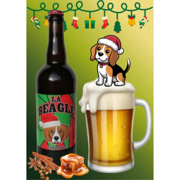 La Beagle Hivernale : bière ambrée et chaleureuse, arômes de fruits rouges, caramel et épices. Douce, riche et parfaite pour les moments conviviaux en hiver.