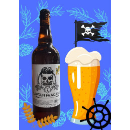 Capitaine Fracasse 8% : bière blonde forte, robe dorée, arômes maltés, épicés et floraux, bouche riche et chaleureuse, finale persistante et gourmande.
