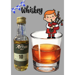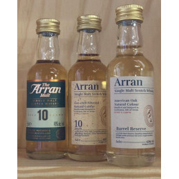 The Arran Malt 10 years 5cl 46° : single malt écossais aux notes d’agrumes, vanille et malt, bouche équilibrée, finale fraîche et légèrement épicée.