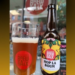 La Bière Hop la Boum séduit par ses notes d'agrumes et de fruits tropicaux, caractéristiques des houblons Amarillo et Citra.