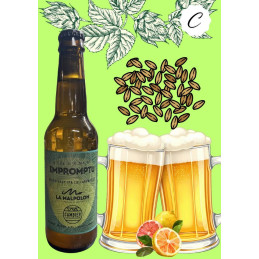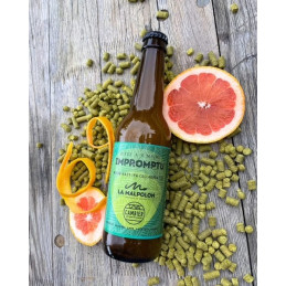 Impromptu 2,9° : bière légère et rafraîchissante, houblons aromatiques, notes fruitées et florales, finale douce et légèrement amère.