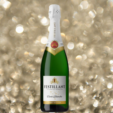 Le Festillant Cuvée Blanche offre une robe dorée et des bulles vives. Un nez gourmand de pomme et d'agrumes pour un plaisir intact, sans les effets de l'alcool.