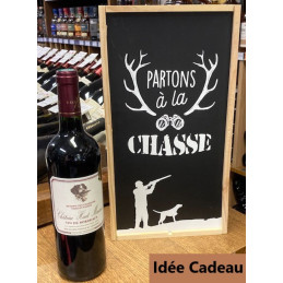 Une idée CADEAU pour un chasseur: Un joli coffret pour offrir cette bonne bouteille fournie avec 3 accessoires: flasque, bonnet , couteau